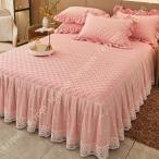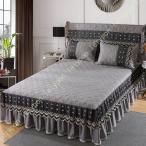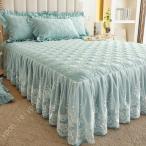 厚手 ベッドスカート 宮廷風 レース ベッドシーツ 中綿 肌触り マットレスカバー ピーチスキン 刺繍 姫系 寝具カバー 洋式 着脱簡単 柔らかい ベッドカバー