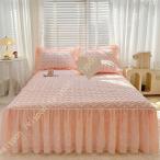 ベッドスカート 2点枕カバー 3点セット 中綿 上品 フリル 綿 キルティング 洗いざらし 柔らかい レース付き シングル ダブル セミダブル ベッドカバー