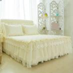 綿 かわいい 姫系 ベッドスカート レース付き 中綿入り 無地 ベッドカバー コットン 肌に優しい マットレスカバー 通年使える フリル ベッドシーツ