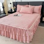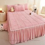 ベッドスカート 2点枕カバー フランネル キルティング 中綿 上品 厚め 姫系 レース ベッドカバー 秋冬 暖かい フリル 姫系 柔らか ダブル マットレスカバー