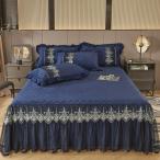 ベッドシーツ 厚手 ベッドスカート ダブル 中綿入り 敷きパッド フリル レース シングル マットレスカバー セミダブル ロマンチック かわいい おしゃれ 刺繍