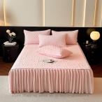 ベッドスカート ベッドスプレッド フリル 中綿ベッドカバーなめらか肌触り 寝具カバー 雰囲気アップ 敷きシーツ 肌触り良い 2点枕カバー ベッドカバー 暖かい