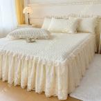 ベッドスカート レース 姫系 柔らかい ベッド用品 寝具 可愛い 枕カバー シーツカバー ベッドカバー 無地 北欧風 四季通用 ベッドスプレッド 敷きパッド 北欧風