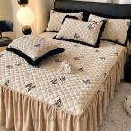 敷き布団カバー ベッドスカート シングル ベッドシーツ ベッド用品 中綿 厚手 寝具カバー 可愛い 姫系 キルティング加工 敷きふとん ベッドカバー