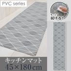 在庫処分 キッチンマット 約45×180cm 単品 1枚 / ラティス PVC グレー 床暖房OK 拭くだけ 洗濯不要 滑りにくい 冷え対策 おしゃれ 上品 シンプル