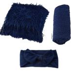 A-Tail 撮影用ベビーブランケット 赤ちゃん用写真マット ヘアバンド 写真撮影用小道具ラップ 3点セット(ネイビー)
