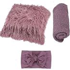 エイタイル 撮影用ベビーブランケット 赤ちゃん用写真マット ヘアバンド ブランケット 写真撮影用小道具ラップ 3点セット (パープル)
