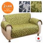 日本製 インテリア 綿100% コットン ソファカバー 肘付タイプ キルトカバー 唐草文様 アラベスク柄 シック 国産プリントキルトソファーカバー 2人掛用
