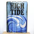 木製 プレート 看板 おしゃれ ウッドボード HIGH TIDE ビーチ レトロ 海 サーファー サーフィン アメリカン ビンテージ ガレージ