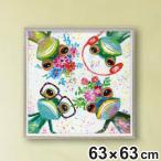 アートパネル オイルペイントアート 『カエルの星』 63×63cm ( 絵画 絵 アート インテリア 額 額入り 壁掛け カエル 蛙 カラフル )