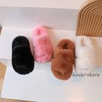スリッパ ルームシューズ 子供用 キッズ ベビー 女の子 男の子 室内履き 前詰まり フラット フェイクファー ストラップ付き もこもこ ふわふわ 刺