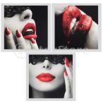 3本の現代美術油絵キャンバスの絵赤い唇の壁の家の装飾40x40cm