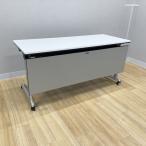 オカムラ 会議テーブル フラップ式 幕板付 幅1500 ホワイト 中古 TF-878716B