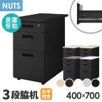 倉庫受取限定 脇机 3段 幅400×奥行700mm デスクワゴン サイドデスク サイドチェスト サイドワゴン サイドキャビネット 引き出し 鍵付き 収納 LD-WD3B-SO