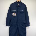 古着 ミリタリー 長袖つなぎ オールインワン ワーク 作業着 ワッペン 大きいサイズ 米軍実物 2008年 40XL ネイビー メンズ