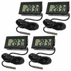 【送料無料】『4個セット』『水温系/温度計』デジタル式 熱帯魚 ミルク 冷蔵庫 室内 車内 水槽 タンク メダカ 金魚 100cm センサー 黒