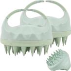 頭皮マッサージブラシ 2個セット 泡立ち特大ハンドル 柔らか歯(グリーン)