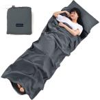インナーシュラフ 寝袋 インナーシーツ 軽量 アウトドア 室内兼用 収納バッグ付き 丸洗い可( グレー)