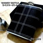 フラスコウイスキーボトル 白ステッチ格子柄 ステンレス ブランデー ウォッカ ウィスキー キャンプ アウトドア おしゃれ 水筒 ブラック