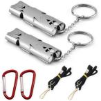 サバイバルホイッスル、CTRICALVER 高デシベル安全ホイッスル、ストラップ付き、キーチェーン、二連緊急ホイッスル、銀メッキ、80*150dB、学校、ジム、アウトド