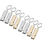 ホイッスル 防災 アルミ製 笛 救援 8枚セット キーチェーン付き 金色/銀色