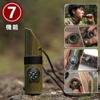 7-in-1 多機能 コンパス ホイッスル 温度計 LEDライト 反射ミラー 拡大鏡 収納 熊よけ サバイバル救援ツール 羅針盤 アウトドア 登山 防災 熊除け