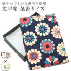 着物 文庫箱 帆布 着物収納箱 日本製 帯留め入れ 中 はがきが入るサイズ 紺 菊 spo7481-kima03
