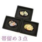 帯留め 3点 セット アクリル 金彩加工 黒 金 桜 蝶 牡丹 和装小物 お着物のアクセントに 未使用 販売 購入 帯留め みやがわ sb503