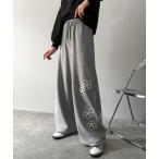 スウェットパンツ ジャージ 「キラキラロゴ×リラックスワイド」裏毛カジュアルパンツ レディース