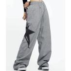 スウェットパンツ ジャージ ルーズフィット スターワッペン付きスウェットパンツ/韓国 ギャル ストリート(CZ) レディース