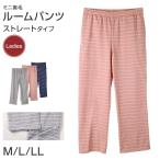 ルームパンツ レディース パンツ ボーダー ルームウェア ストレート 部屋着 パジャマ ミニ裏毛 M L LL ウエストゴム 紐調整可能 ポケット付き シンプル