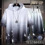 ジャージ メンズ 上下セット セットアップ 半袖パーカー グラデーション 夏 ショートパンツ 半袖パーカー 接触冷感 運動着 部屋着 スポーツウェア