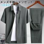 セットアップ メンズ 夏 上下セット 接触冷感 Tシャツ 綿麻風 ロングパンツ パンツ ロング丈 カジュアル ひんやり 父の日