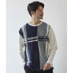 ニット×ポンチ パネル切り替え クルーネックロンT