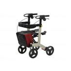 歩行器 四輪 歩行車 シルバーカー アルミ製 折り畳み式 手押し車 高齢者 簡単組立 高さ調節可 1台3役 室内室外兼用 (レッド)
