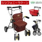 歩行車 歩行器 シンフォニーラクーン 花柄ドットエンジ 座面付き カゴ載せ 買い物カゴ 折 りたたみ ショッピングカート 島製作所