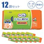 【お得な12袋セット】 ライフリー らくらく おしりふき トイレに流せる 72枚入×12袋 ユニ・チャーム 無香料 ノンアルコール 厚手 大判シート おしり拭き