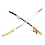 模造刀 日本製 美術刀剣 日本刀 金茶 3点セット(大刀・小刀・刀台2本掛け)/送料無料