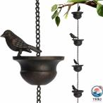 雨どい 樋 雨樋 鎖樋 溝雨鎖 2個セット 屋外用レインチェーン カップ上の鳥 側溝縦樋 モバイル 7.8フィート ダークブロンズ 付属ハンガー 水をそらすためのポー
