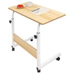 Color:ホワイト Yumcute サイドテーブル 昇降式 パソコンデスク 高さ60-95cm キャスター付き 幅60 角度調整 無段階高さ調節 オフィス 移動式 勉強机 仕事 ベッド