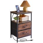 Color:復古色 Aibiju サイドテーブル ベッドサイドテーブル コンセント&USBポート付き ベッド横棚 寝室棚 布製引き出し 幅40奥行き30高さ58cm サイドチェスト