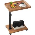 Color:原木色 サイドテーブル 昇降式 キャスター付き【2025業界革新設計・可動式テーブル】介護テーブル 360度自由回転 高さ調節 ソファーテーブル 耐水 高温に