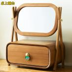 女の子用 プリンセス風 ドレッシングテーブル ミラー収納付き 堅木製 ゴールデントーン 省スペース 幅60cm