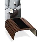 ソファーアームテーブル 木製 アームレストトレイ スクエア サイドテーブル カップホルダー(ダークブラウン)