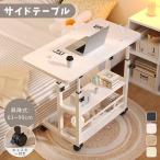 サイドテーブル ミニテーブル キャスター付き 高さ63cm 北欧 ブラック 白 スチール ベッド横 デスク 玄関 おしゃれ 食事 介護テーブル 木目 ソファー