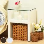 サイドテーブル 高さ48.5cm ガラス天板 ( ナイトテーブル ガラステーブル ミニテーブル ベッドサイド 棚付き 収納 )