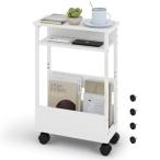 サイドテーブル スリム 白 キャスター付き 幅40×奥行き18×高さ59.5cm サイドテーブル 収納 スリム ナイトテーブル ベッド横 おしゃ