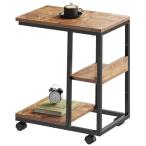 YeTom サイドテーブル キャスター付き ソファーテーブル コの字型ベッドサイドテーブル ソファテーブル 可移動 層板は調節 幅40×奥行29