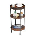 ZEXVIDA サイドテーブル 3段 丸 ナイトテーブル 幅30×奥行30×高さ55cm リビングサイドテーブル ベッド横 ミニテーブル おりた