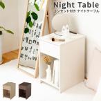 ナイトテーブル 引き出しタイプ 幅20cm スリム サイド テーブル 2口 コンセント付 オープン 棚 ソファ ベッド デスク ディスプレイ 机 すきま 家具 送料無料